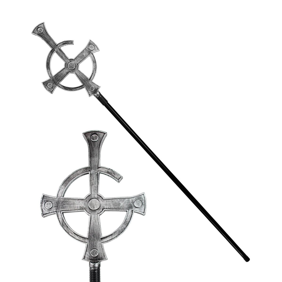 Dodaj imponujący dodatek do swojego kostiumu na Halloween dzięki tej składanej lasce z krzyżem. Dzięki długości 1,45 m i czarno-srebrnemu wykończeniu jest idealna dla księży, wampirów lub innych strojów tematycznych.