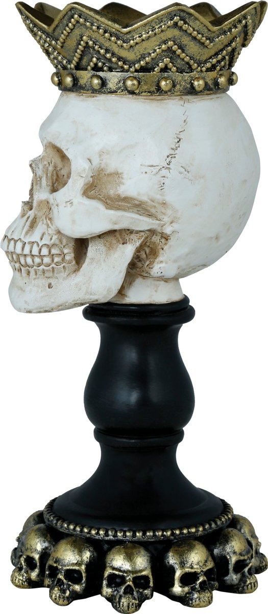 Nadaj swojej dekoracji na Halloween upiorny akcent dzięki temu świecznikowi w kształcie czaszki. Świecznik ma wymiary 25 x 12 cm, jest wykonany z tworzywa sztucznego i nadaje się do standardowych świec. Idealny do postawienia na stołach, parapetach lub jako przyciągający wzrok detal podczas imprez Halloween.