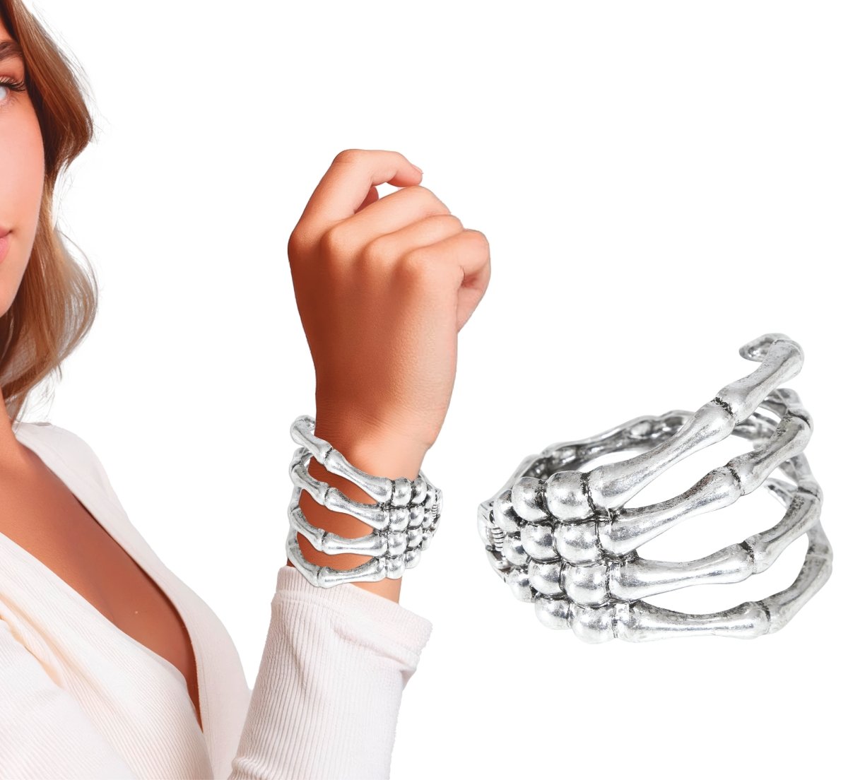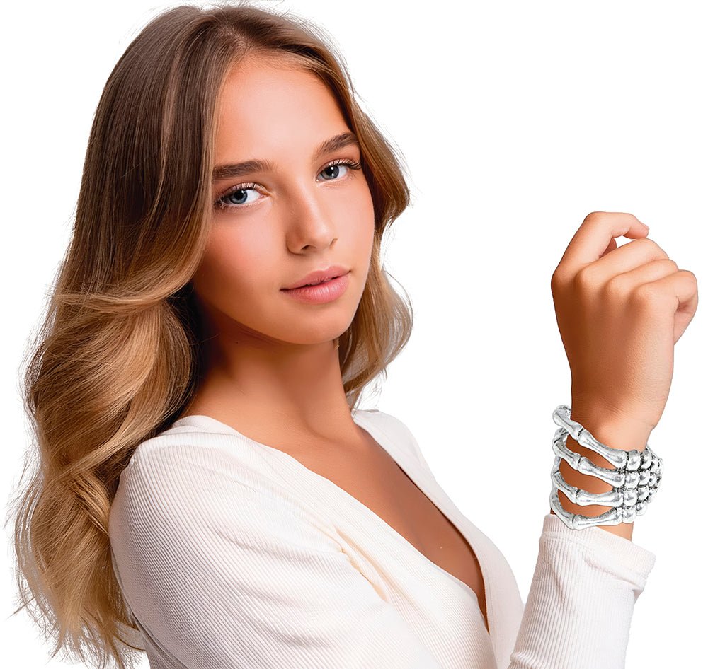Bransoletka na Halloween Srebrna Ręka Szkieletu