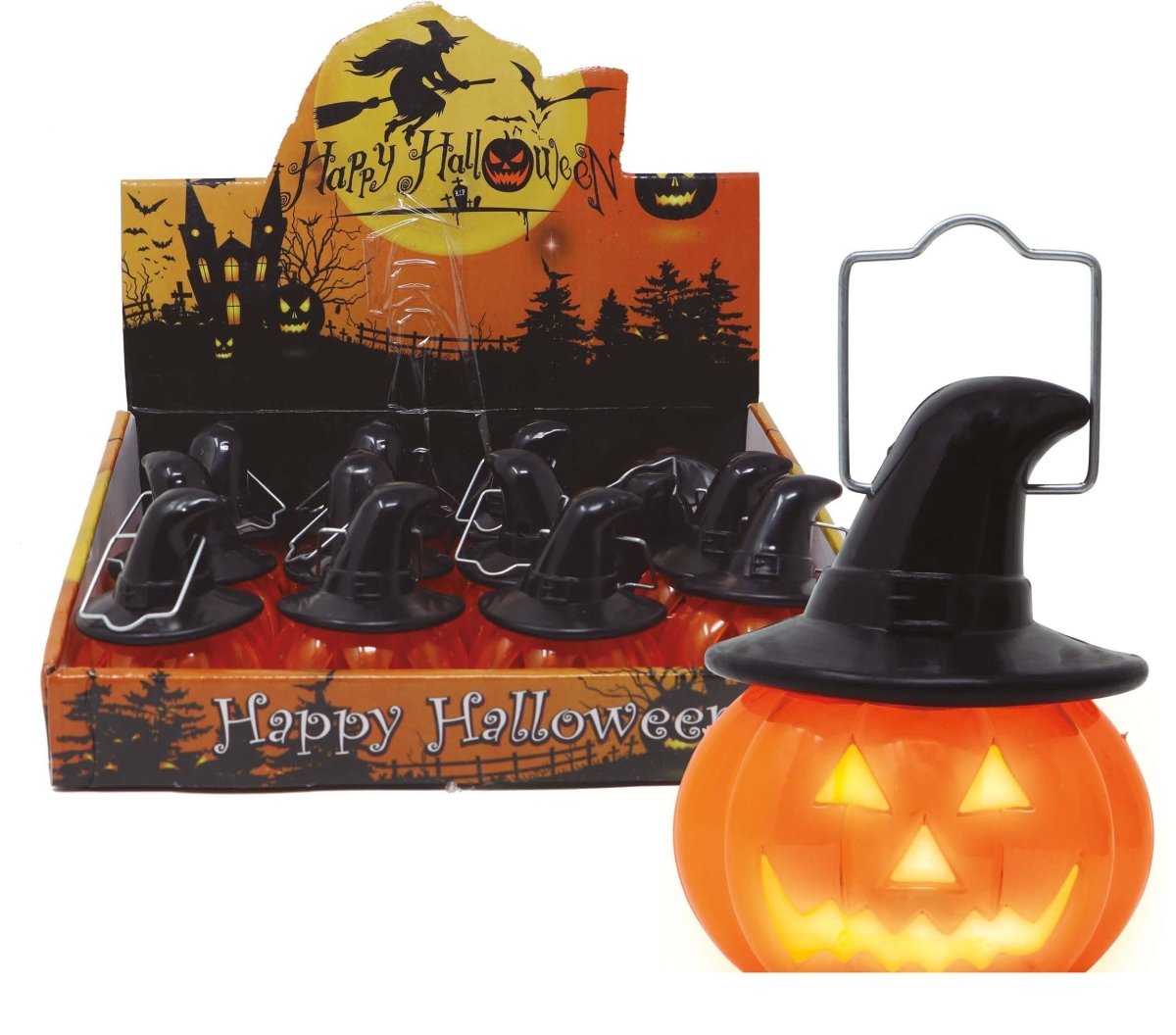 Dekoracja wisząca na Halloween Dynia ze światłem 8 cm