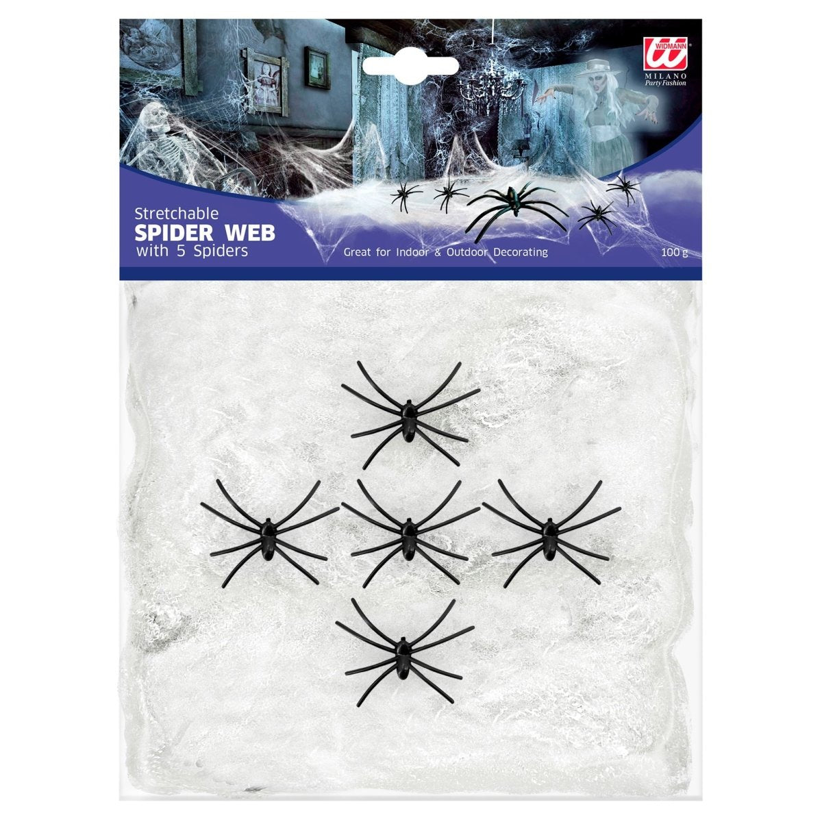 Halloweenowa pajęczyna biała z pająkami 6 sztuk