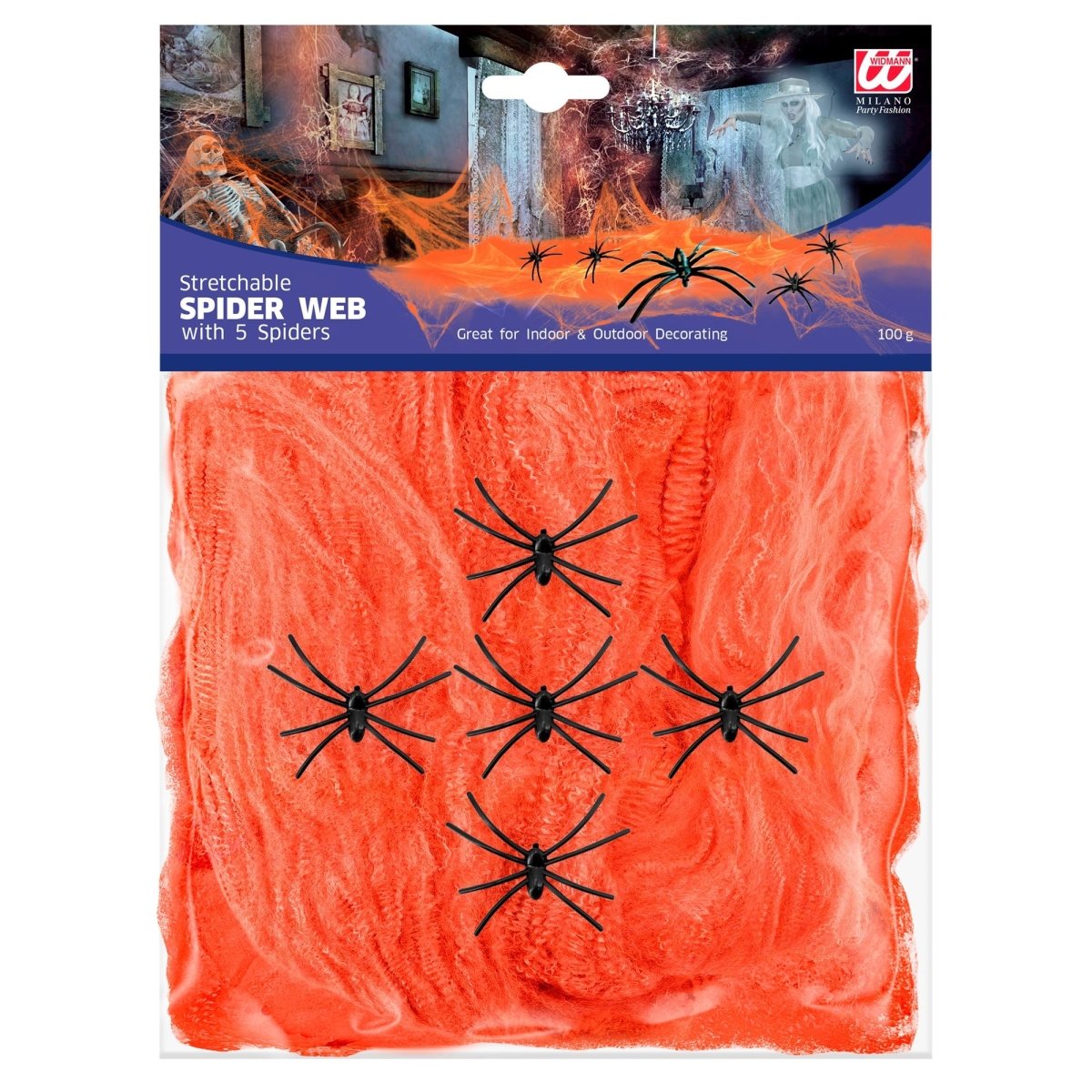 Halloweenowa pajęczyna pomarańczowa z pająkami