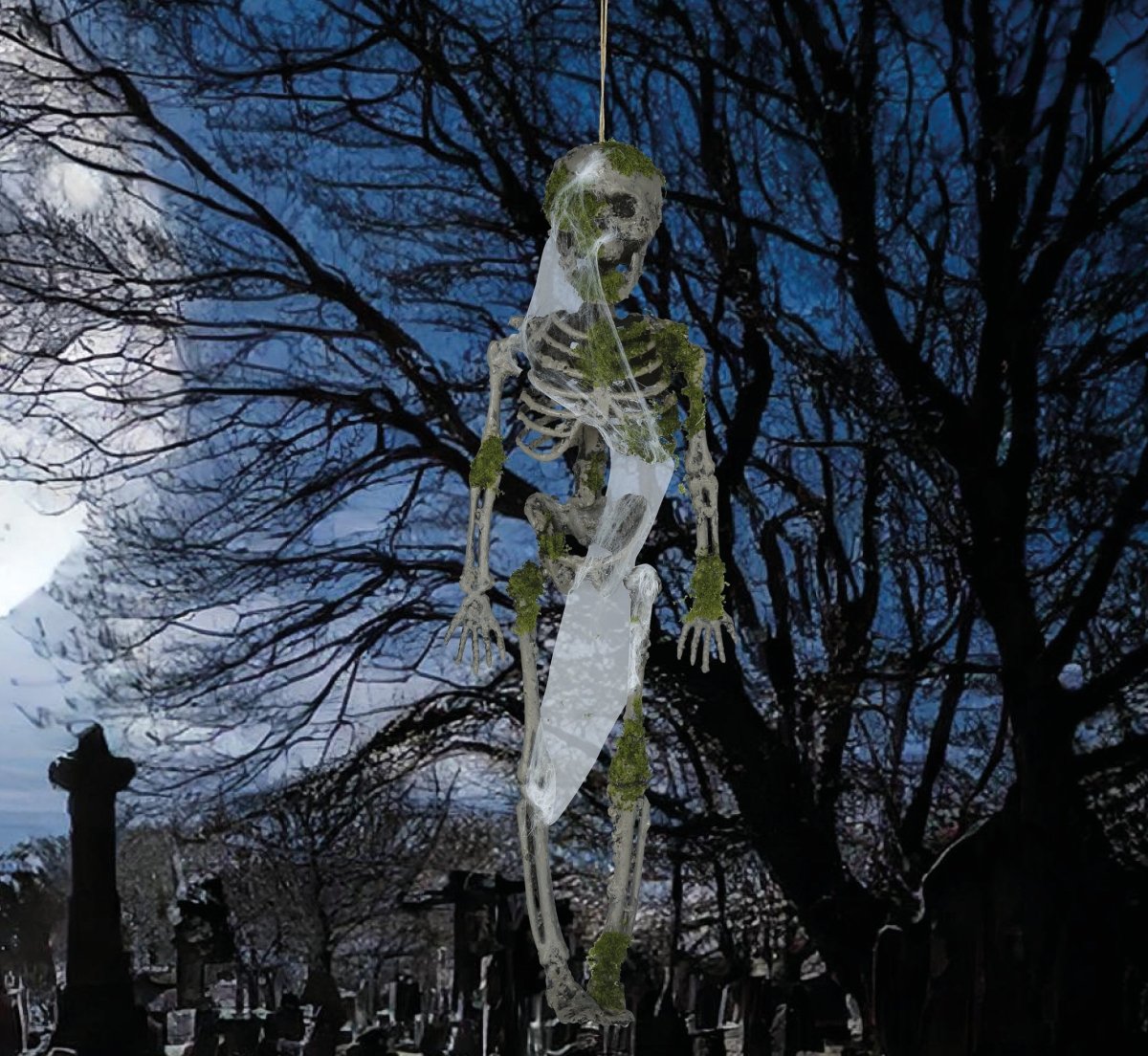 Dekoracja wisząca na Halloween Szkielet z mchem 40 cm