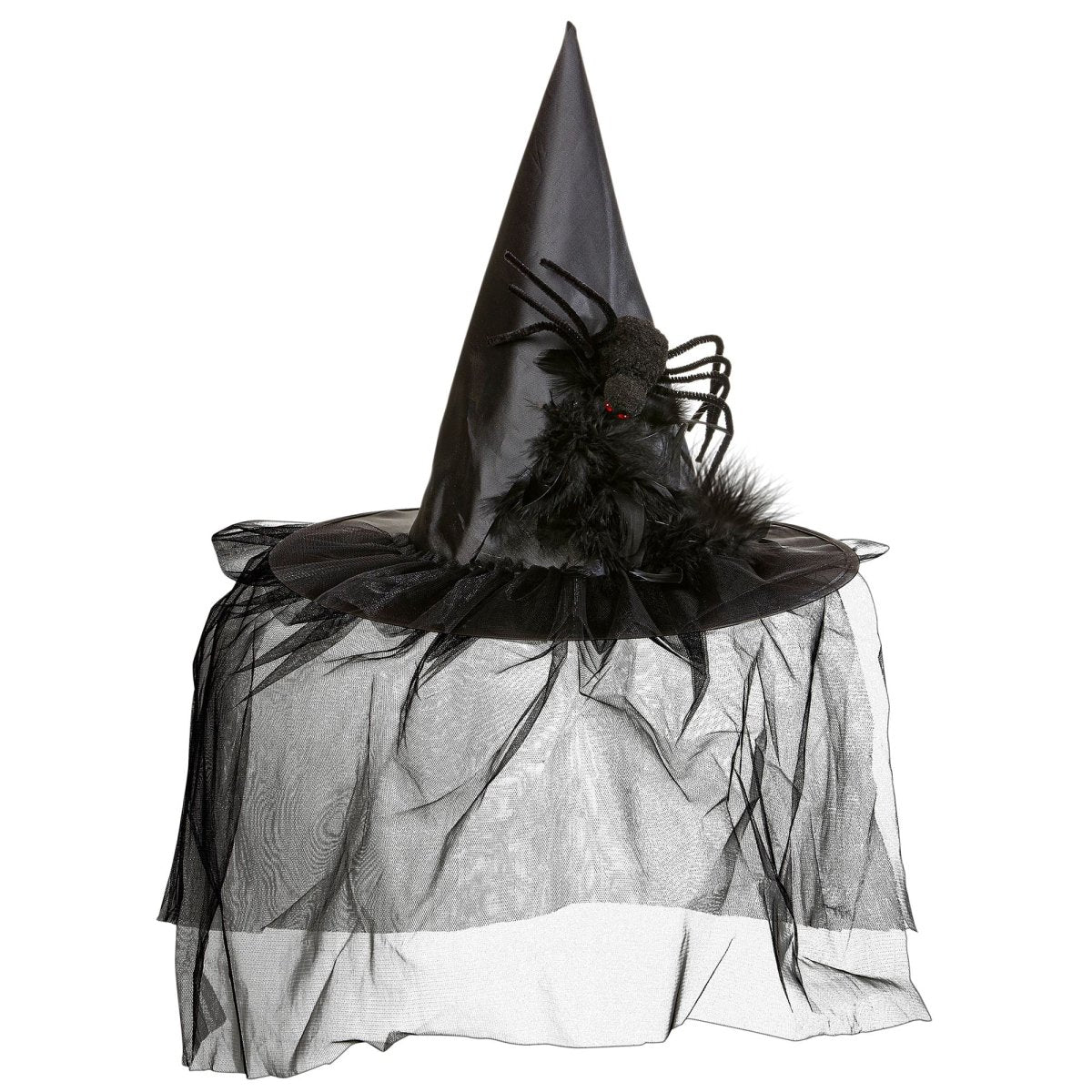 Halloweenowy kapelusz czarownicy z welonem i pająkiem