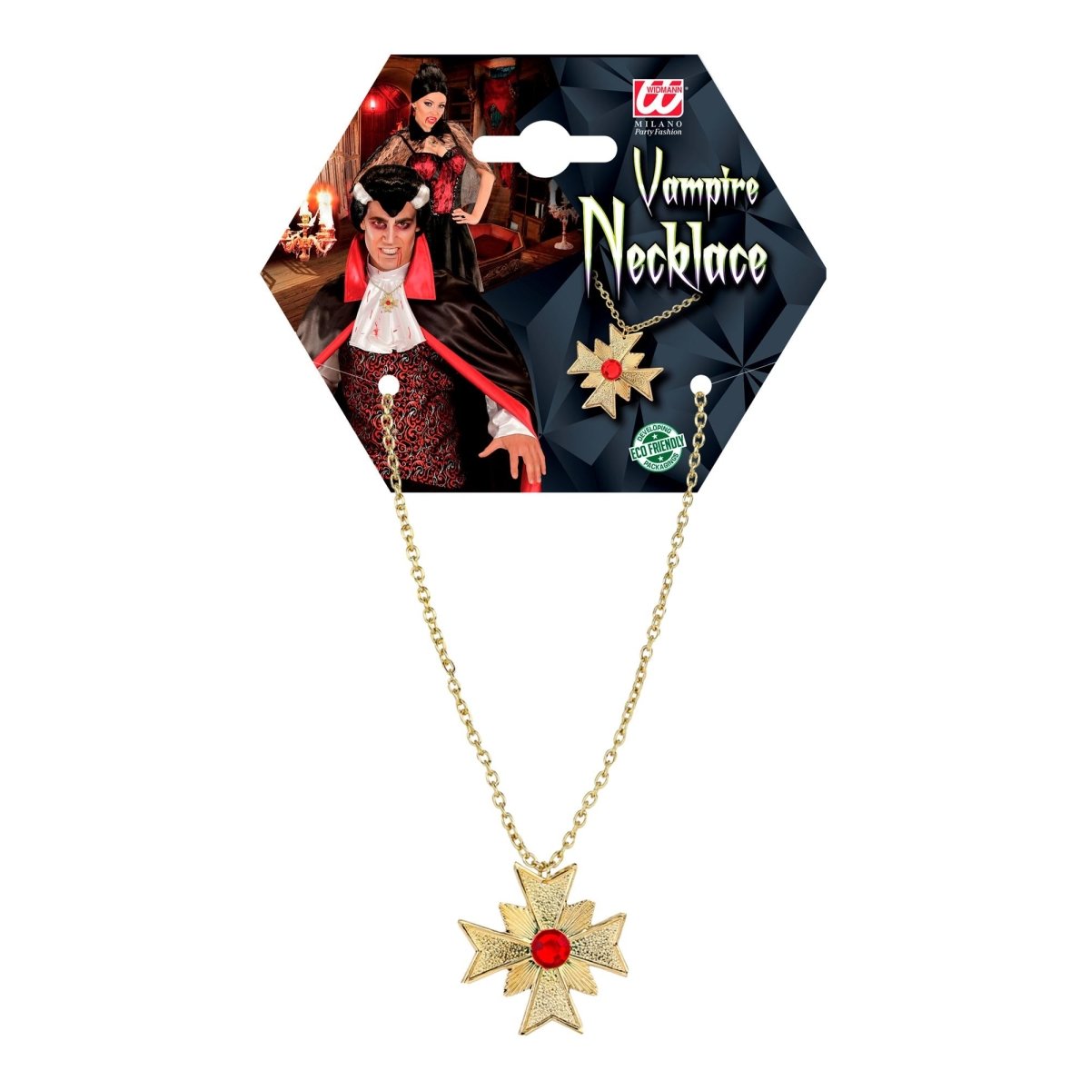 Złoty naszyjnik na Halloween z czerwonym kamieniem szlachetnym