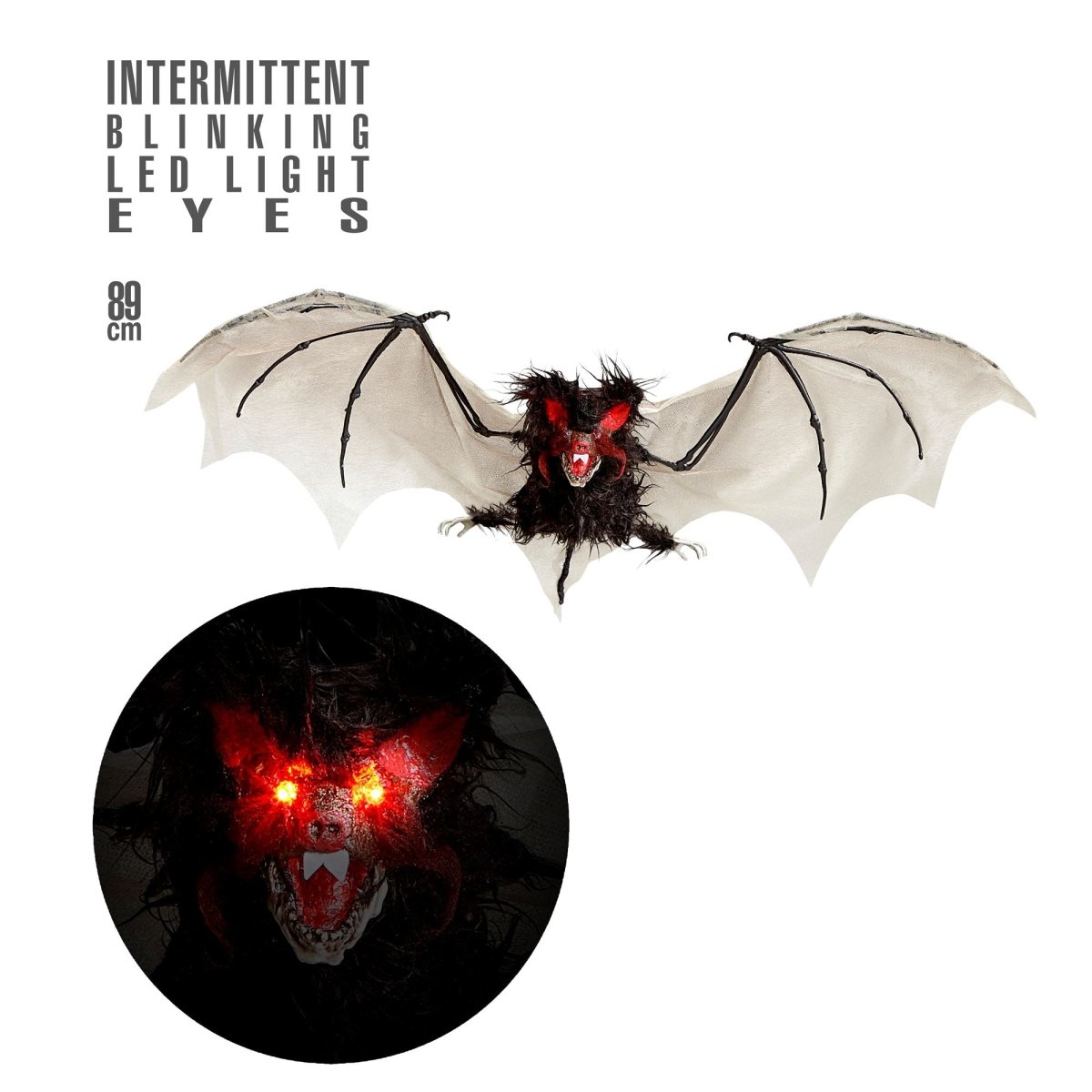 Halloweenowy sztuczny nietoperz ze światłem 89 cm