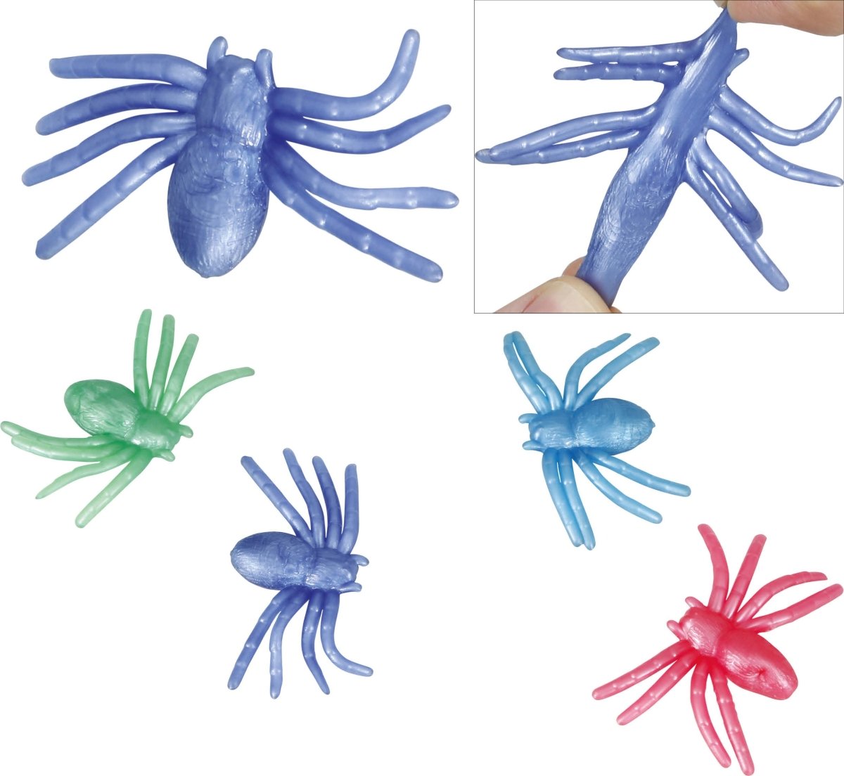 Fałszywy pająk na Halloween kolorowy 7cm 4szt