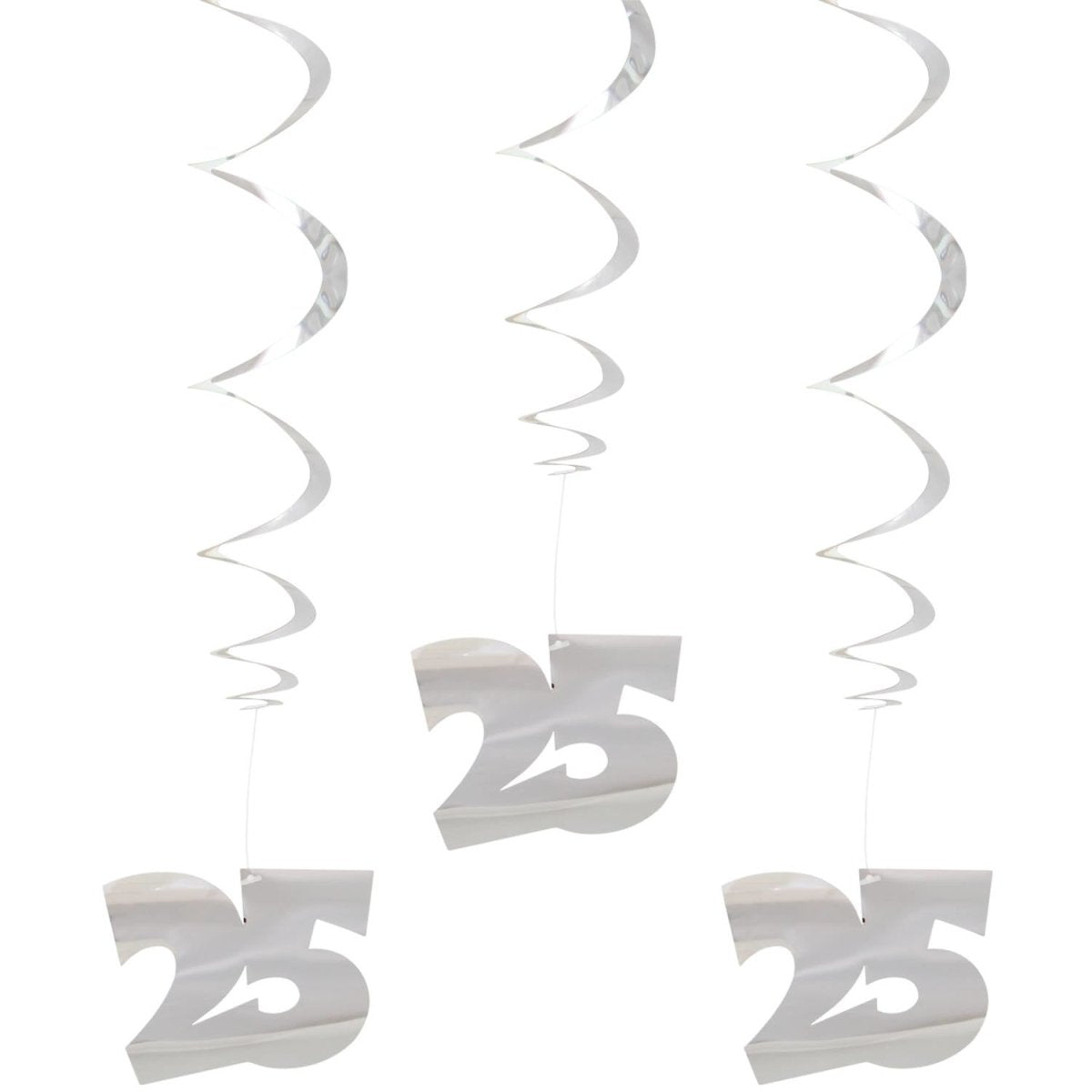 Srebrna dekoracja wisząca 25 lat - 3 szt. Zawartość: 3 sztuki dekoracji wiszącej. Do wykorzystania na przykład podczas następujących przyjęć/imprez okolicznościowych: Rocznica, Urodziny. Długość artykułu: 75 cm. Artykuł jest wykonany z papieru