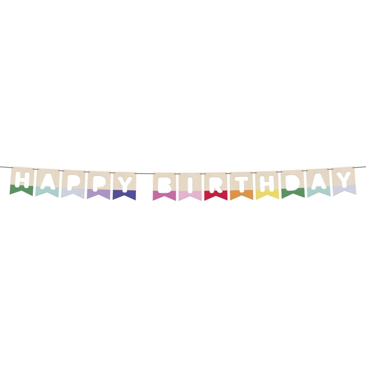 Drewno na każde urodziny! Żyłka flagowa - Drewno - "HAPPY BIRTHDAY" - Stripetastic - 4 m. Zawartość: 1 linka flagowa. Do wykorzystania na przykład podczas następujących przyjęć/imprez okolicznościowych: Urodziny, Impreza dla dzieci. Kolorowa linka flagowa, ale wykonana z drewna. Litery "HAPPY BIRTHDAY" są wycięte, a dolna część flag ma za każdym razem inny kolor. Flagi mają wymiary 11 x 14 x 0,3 i można je przesuwać po beżowej wstążce. Ponieważ ta linia flagowa jest wykonana z drewna, może być używana przez wiele urodzin. Ta linia flagowa należy do kolekcji Stripetastic od