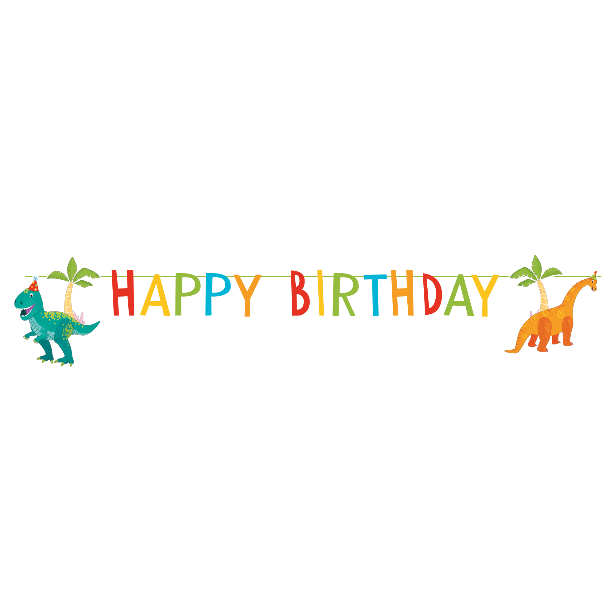 Świętuj urodziny w stylu dinozaurów dzięki tej wesołej girlandzie z literami "Happy Birthday". Zabawna dekoracja na każde przyjęcie z dinozaurami.