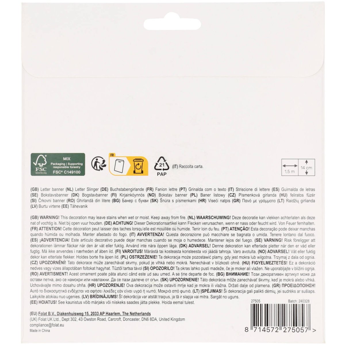 Prawdziwe końskie przyjęcie! Zestaw girland literowych - Szczęśliwe konie - 1,5 metra. Zawartość: 1 girlanda literowa w 2 częściach. Do wykorzystania na przykład podczas następujących przyjęć/imprez okolicznościowych: Przyjęcie dla dzieci, Urodziny. Ta wesoła girlanda literowa składa się z dwóch części: girlandy z napisem "HORSE PARTY" (litery o wysokości około 14 cm) z koniem po obu stronach oraz girlandy z napisem "HAPPY BIRTHDAY" (litery o wysokości około 14 cm) z koniem po obu stronach. Między tymi dwoma słowami znajduje się również mały konik, a zabawne jest to, że między literami za rogiem pojawia się więcej małych koników. Nadruk po obu stronach. Wszystkie części można przesuwać tam i z powrotem po szaro-zielonej wstążce. Wstążki obu girland mają 1,7 metra długości. Ten zestaw girland z literami należy do kolekcji Happy Horses od