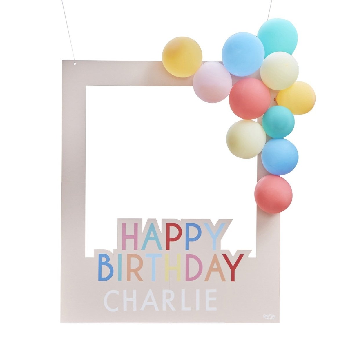 Każde opakowanie zawiera 1 ramkę o wymiarach 720 mm (wys.) x 600 mm (szer.) oraz 4 arkusze tęczowych liter i 11 balonów.
