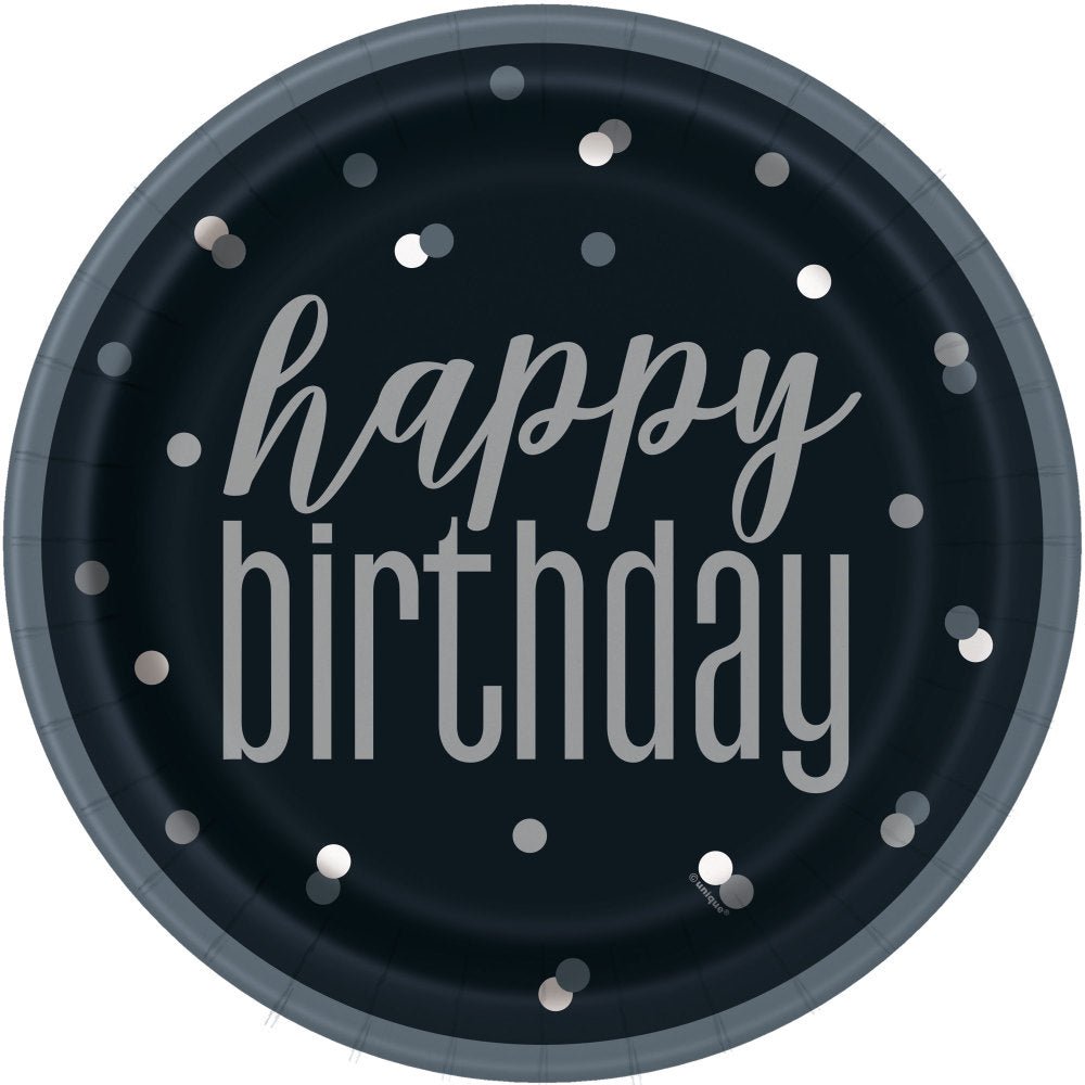 Talerzyki urodzinowe czarne kropki 22,2 cm 8 szt