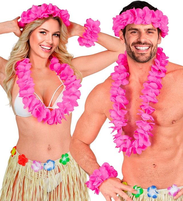 Kompletny zestaw Hawaje w czerwonym kolorze, idealny do letniego i świątecznego wyglądu. Zestaw ten doskonale uzupełnia różne kostiumy hawajskie i stroje tropikalne.