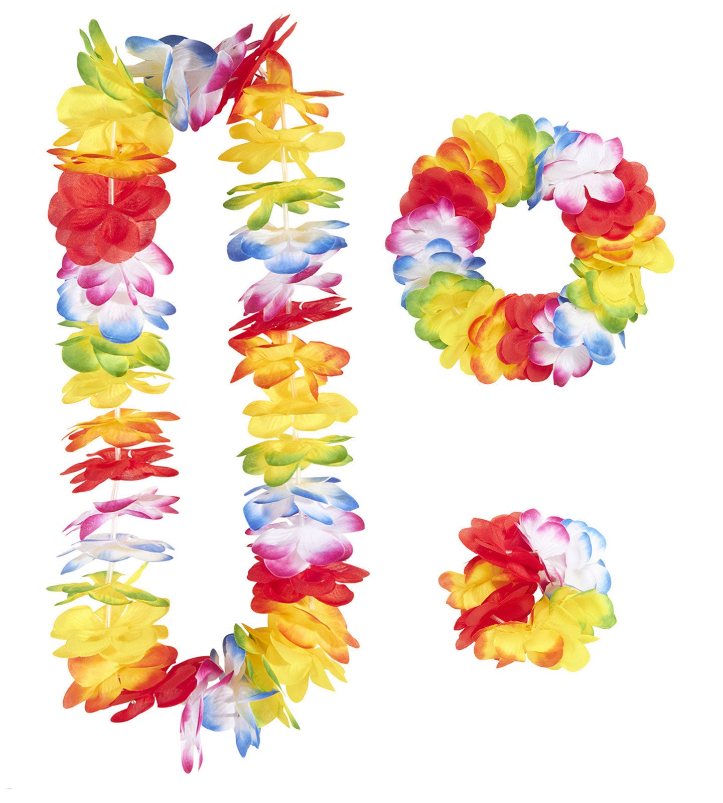 Opis Recenzje Informacje o tym produkcie Opis: luksusowy wielokolorowy zestaw hawai lei, korona, bransoletkaMateriał: 50% PVC, 50% poliester Trustpilot