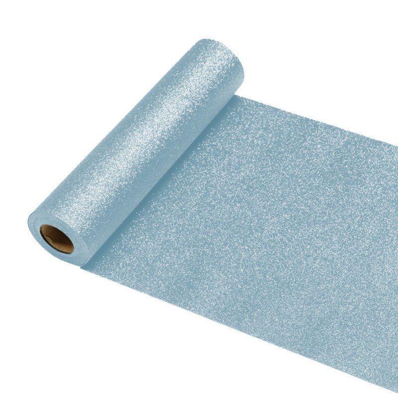 Jasnoniebieski brokatowy bieżnik na stół 5m