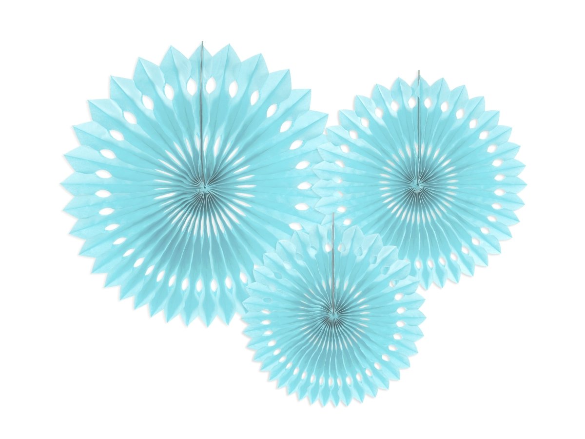 Jasnoniebieskie wachlarze papierowe 20cm 3szt