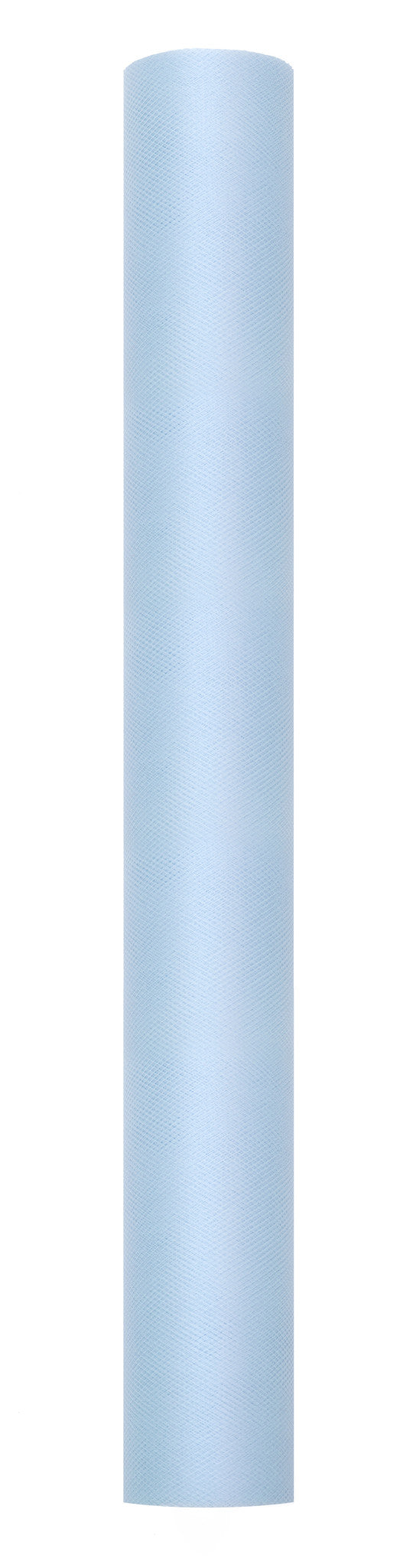 Zawartość: Tiul gładki, błękitny, na rolce, rozmiar 0.5x9 metrów.