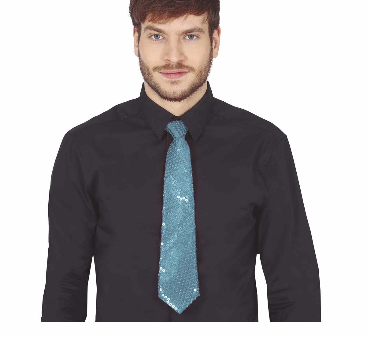 Jasnoniebieski krawat z cekinami 35 cm