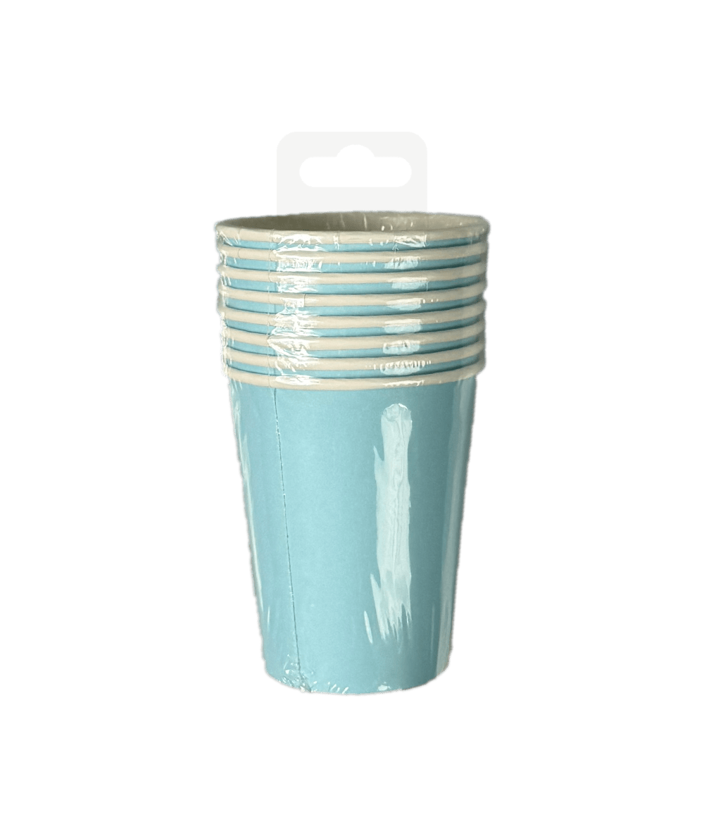 Kubeczki w kolorze pastelowego błękitu to idealne elementy dekoracyjne na przyjęcie, którego motywem przewodnim jest kolor pastelowego błękitu. Kubki mają wymiary 8,5 x 7 cm, są pakowane po 8 sztuk i idealnie pasują do innych pastelowych niebieskich elementów, takich jak konfetti, serwetki, talerze, obrusy, pudełka na przekąski i flagi. Zaprezentuj te elementy razem, aby klient od razu wiedział, z czego składa się ta kolekcja. Kubki są wykonane z papieru, dzięki czemu są przyjazne dla środowiska