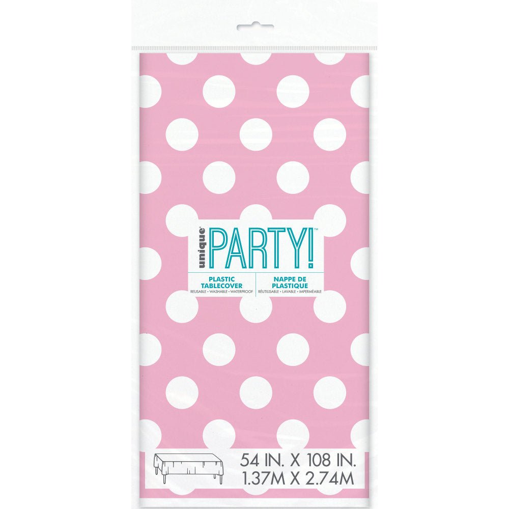 Jasnoróżowy obrus w białe kropki 2,74 m