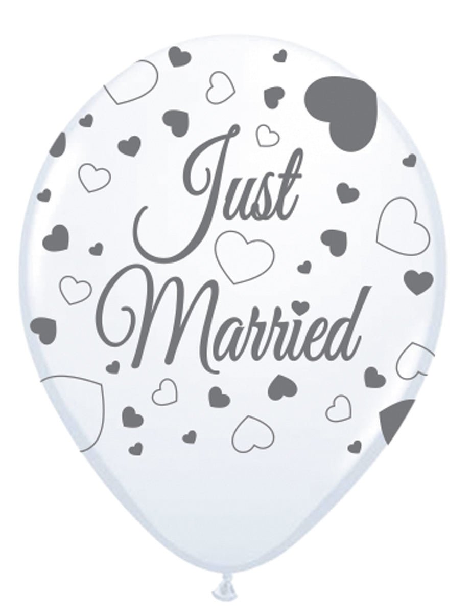 Balony weselne Just Married - 8 szt. Zawartość: 8 balonów lateksowych. Do wykorzystania na przykład podczas następującej imprezy/przyjęcia okolicznościowego: wesele. Każdy balon mierzy 12 cali/30 cm. Artykuł jest wykonany z lateksu.