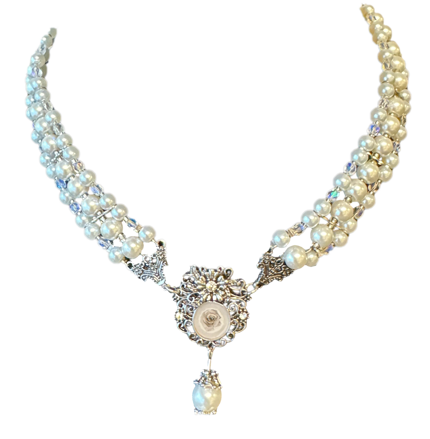 Nadaj swojemu strojowi elegancki i klasyczny wygląd dzięki temu stylowemu białemu naszyjnikowi. Naszyjnik z pereł jest ozdobiony błyszczącymi kryształkami, które dodają luksusowego blasku i są idealne na uroczyste okazje, wesela lub formalne wydarzenia. Dzięki ponadczasowemu białemu kolorowi, naszyjnik ten jest łatwy do połączenia z każdym rodzajem stylizacji i przyciąga wzrok na każdą okazję.
