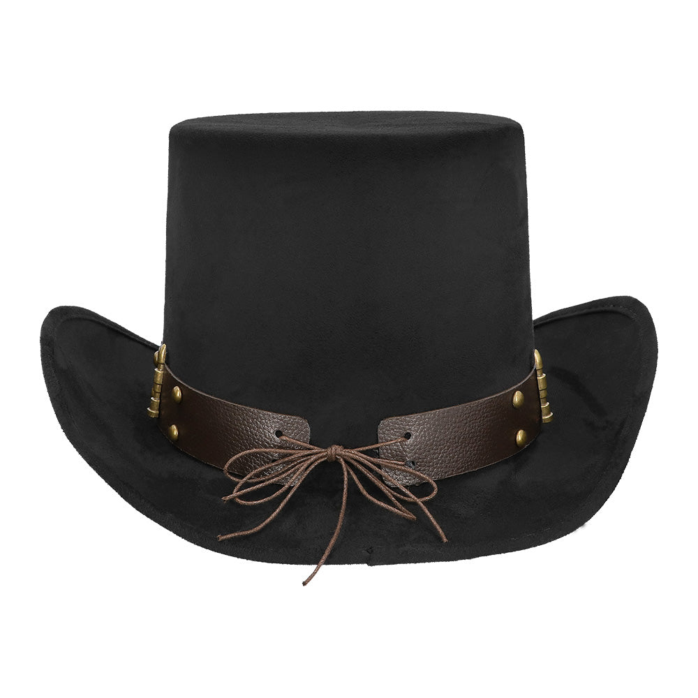 Uzupełnij swój industrialny steampunkowy look imponującym kapeluszem Bulletpunk. Ten stylowy kapelusz ma luksusowy zamszowy wygląd i jest wykończony wytrzymałą skórzaną opaską pełną metalowych detali - w tym orła i ćwieków w kształcie kuli - dla charakterystycznego retro-futurystycznego steampunkowego wyglądu. Dzięki elastycznej opasce wewnętrznej, czapka ma wygodne dopasowanie i pozostaje na swoim miejscu podczas każdej imprezy.
