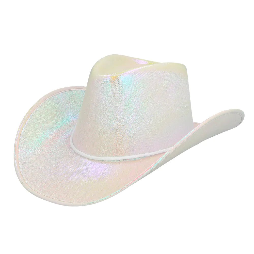 Pozwól przyszłej pannie młodej zabłysnąć na wieczorze panieńskim w tym modnym białym kapeluszu kowbojskim z pięknym perłowym połyskiem. Oczywiście, ten westernowy kapelusz jest również idealnym dodatkiem na imprezę w stylu dzikiego zachodu lub bad party.