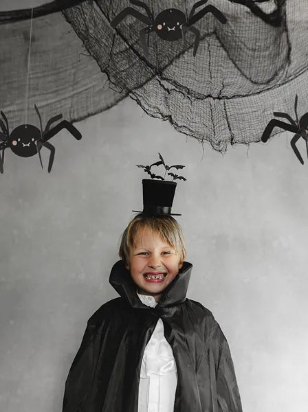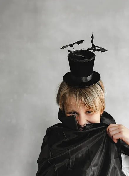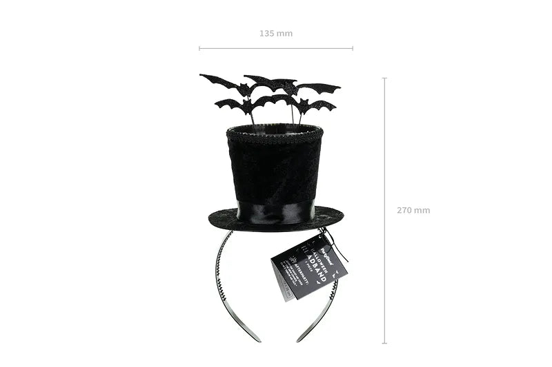 Opaska na Halloween z czarnym cylindrem i nietoperzami.