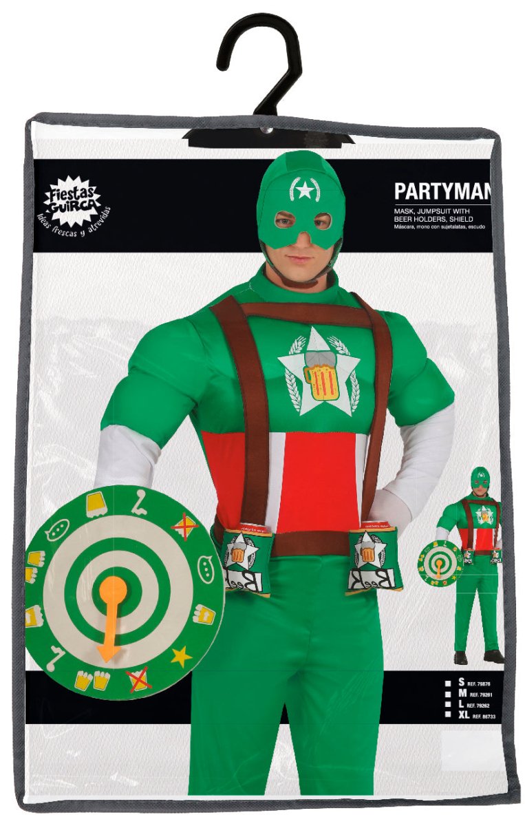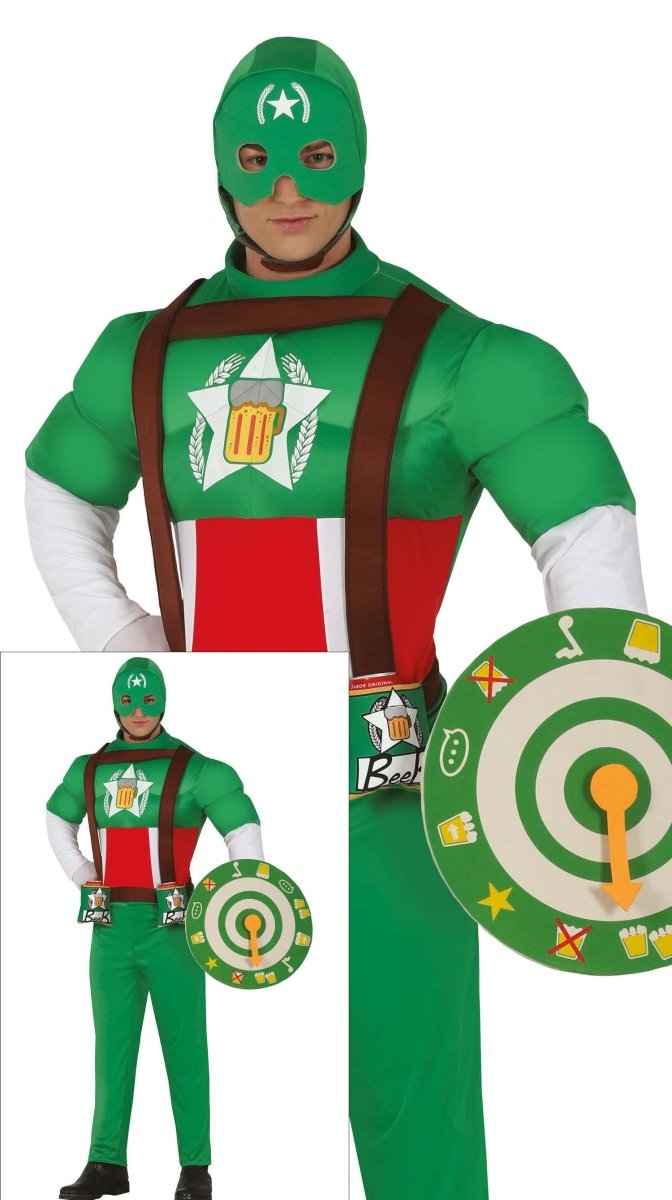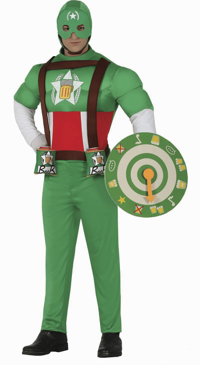 Zawartość: maska, kombinezon z uchwytami na piwo, tarcza