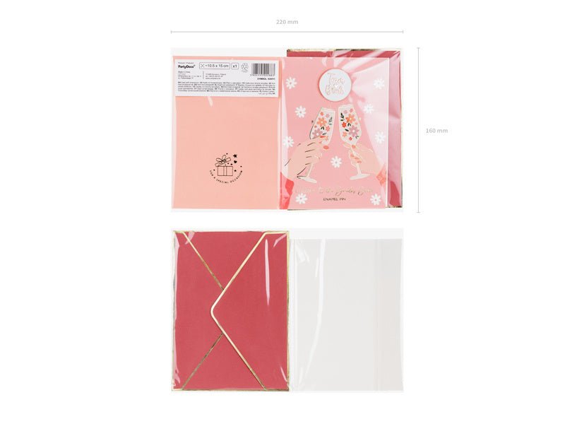 Opis Recenzje Informacje o tym produkcie Kartka mix kolorów ze złotym metalicznym nadrukiem z emaliowaną przypinką z napisem Team Bride i kopertą w kolorze różowym ze złotym metalicznym nadrukiem, rozmiar kartki ok. 10,5 x 15 cm, rozmiar emaliowanej przypinki ok. 3,5 x 3,5 cm. Trustpilot