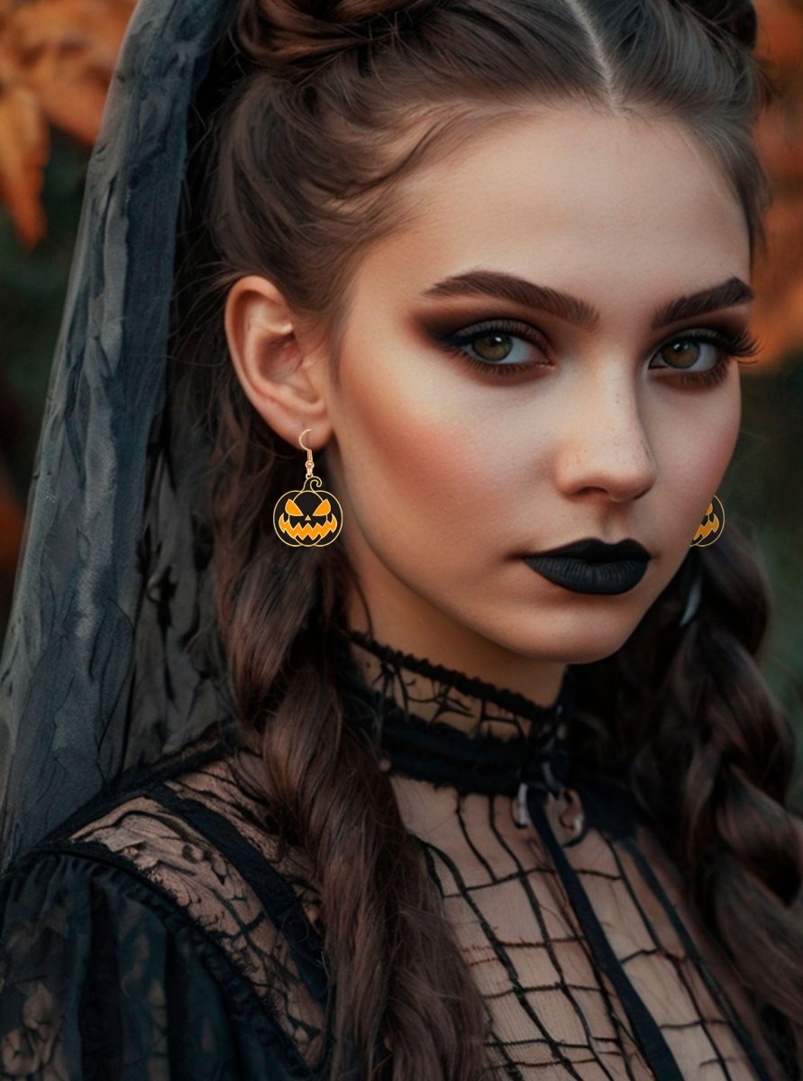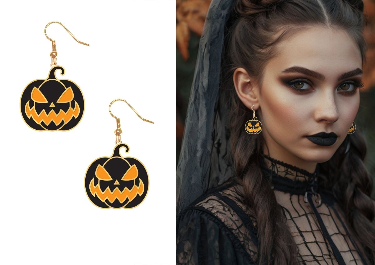 Uzupełnij swój halloweenowy look tymi kolczykami w kształcie dyni. Wykonane z metalu i żywicy kolczyki są trwałe i lekkie, dzięki czemu są wygodne w noszeniu i dodadzą świątecznego charakteru Twojemu strojowi