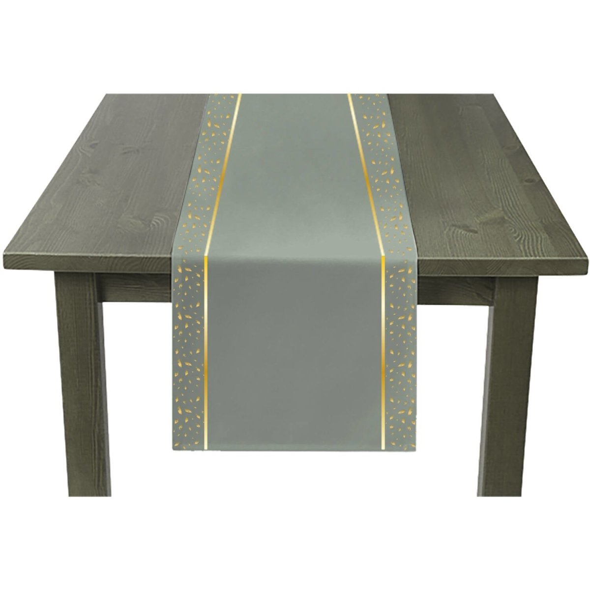 Bieżnik Golden Dawn - 240x35cm. Zawartość: 1 bieżnik. Kolor: szary. Do wykorzystania na przykład podczas następujących przyjęć/imprez okolicznościowych: Urodziny i Przyjęcie dla dzieci. Wymiary: 240 x 35 cm. Bieżnik jest zadrukowany z jednej strony. Artykuł jest wykonany z papieru.