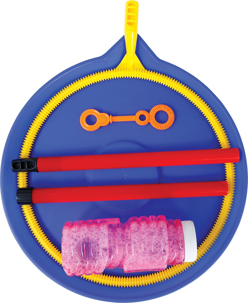 Ten wesoły 6-częściowy zestaw do dmuchania baniek zapewnia wiele godzin zabawy. Zestaw zawiera tacę, dmuchawę do baniek, kij do dmuchania baniek, pierścień do dmuchania baniek i uchwyt, dzięki czemu możesz od razu zacząć robić duże, musujące bańki. Wykonany z wytrzymałego PVC i dostępny w wesołych kolorach.