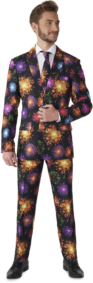 Kiedy fajerwerki zaczynają świecić, wiesz, że masz w rękach najlepszą imprezę. Dlaczego więc nie przygotować się na tę okazję w tym płonącym kombinezonie? Uczyń każdy dzień imprezą w NYE lub 4 lipca, nosząc ostateczny strój fajerwerków.... BANG! Ten dopasowany strój składa się z marynarki, spodni i krawata. Spodnie mają regulowany pasek w talii dla idealnego dopasowania.