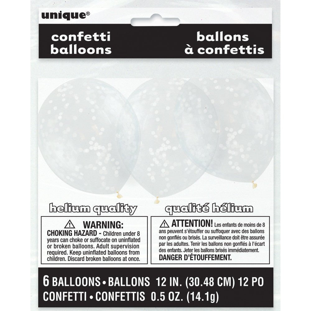 Balony z konfetti białe 30,5 cm 6 szt