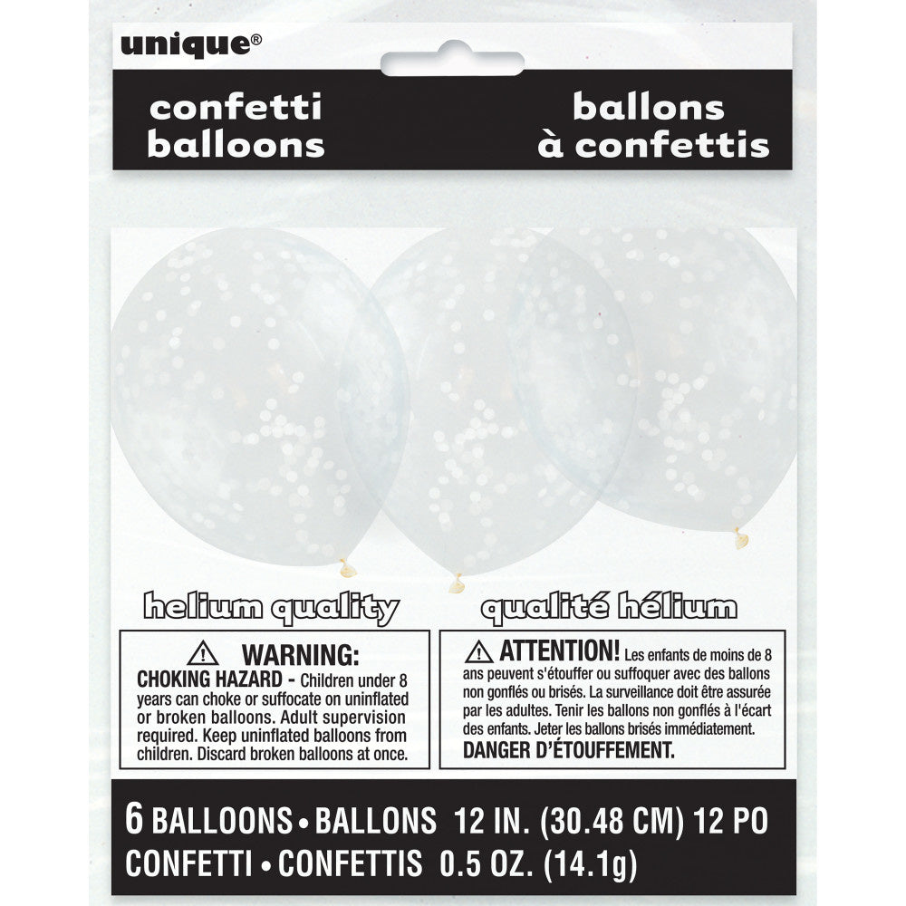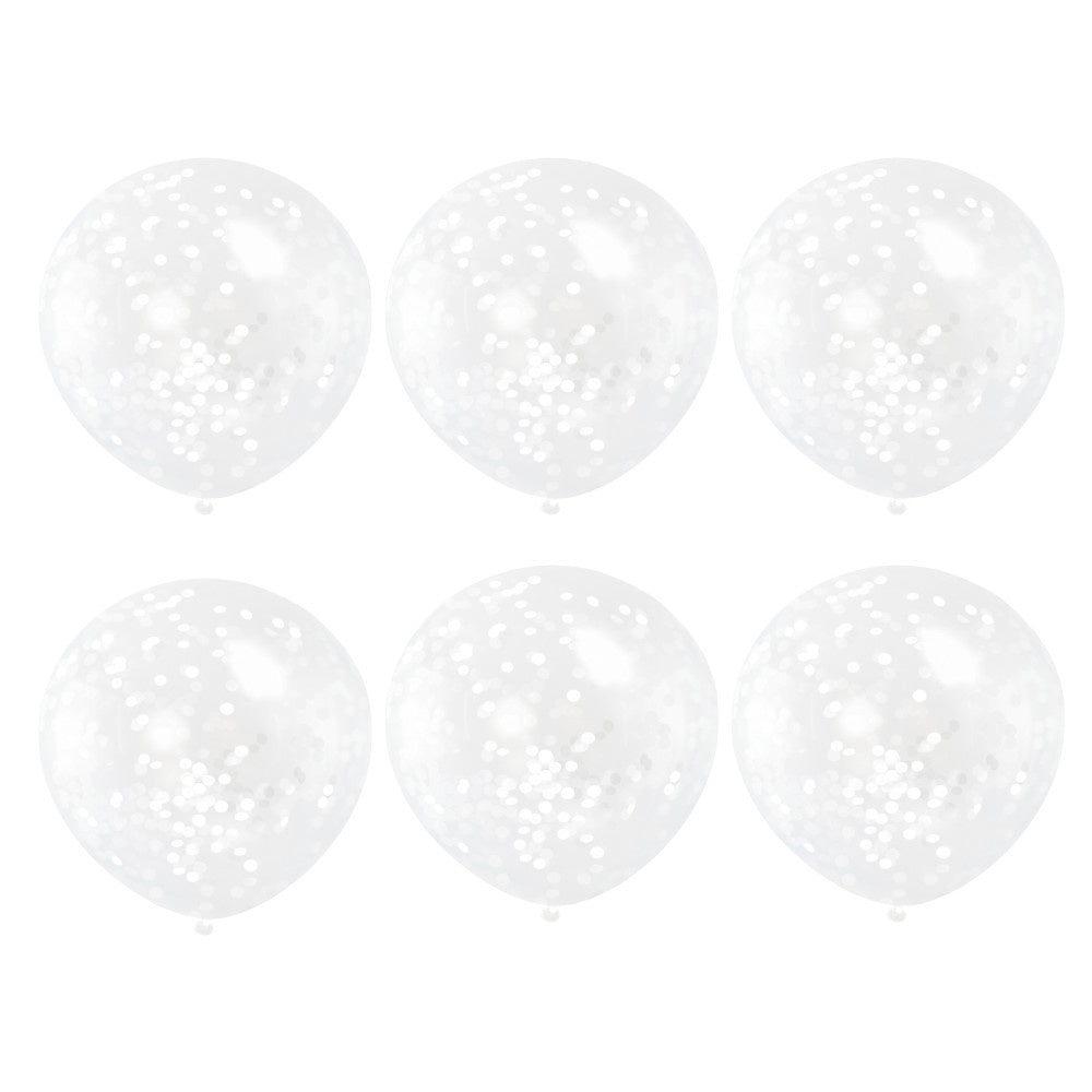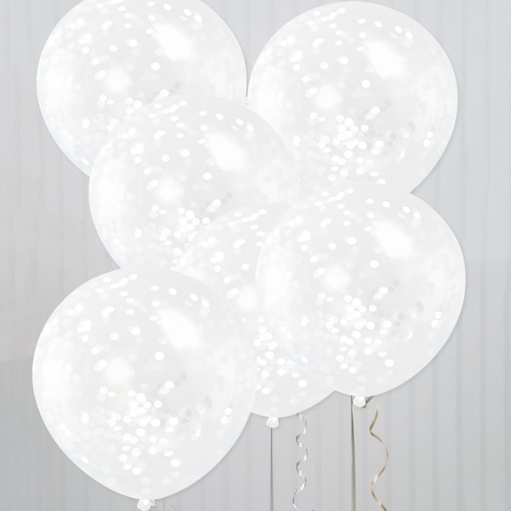 Balony z konfetti białe 30,5 cm 6 szt.