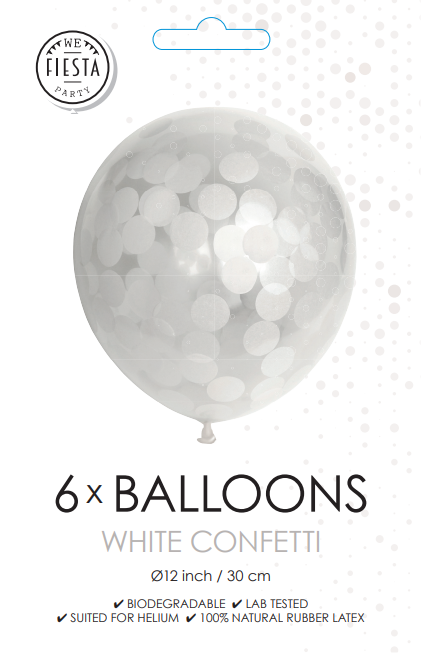 Zawartość opakowania:Balony Konfetti Białe 30cm 6szt