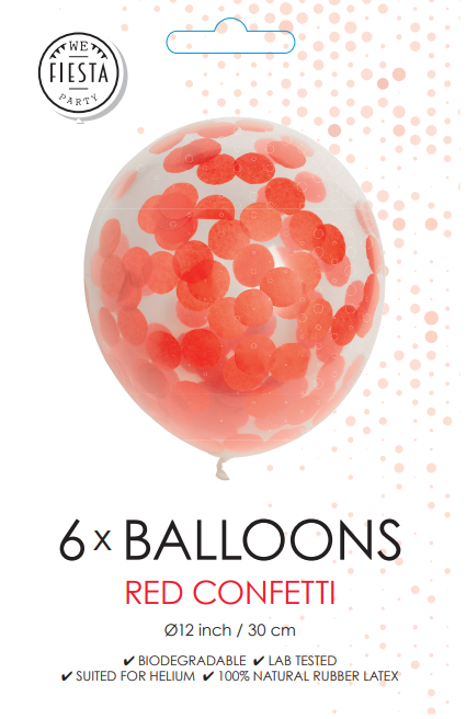 Zawartość opakowania:Balony konfetti czerwone 30cm 6szt