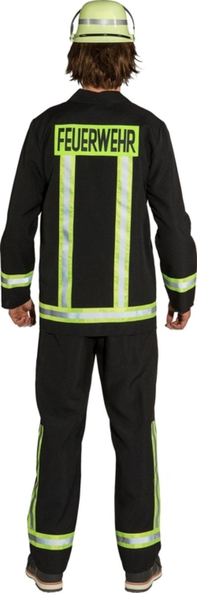 Ten kostium strażaka składa się z kurtki i spodni ogrodniczek. Z tyłu kurtki znajduje się emblemat strażaka. Kompletny kostium do przebieranek lub celów tematycznych. Wykonany w 100% z tkaniny poliestrowej.