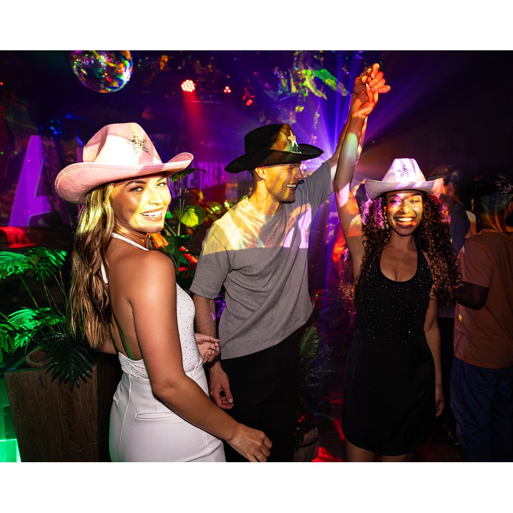 Kowbojski kapelusz z czarną brokatową gwiazdą