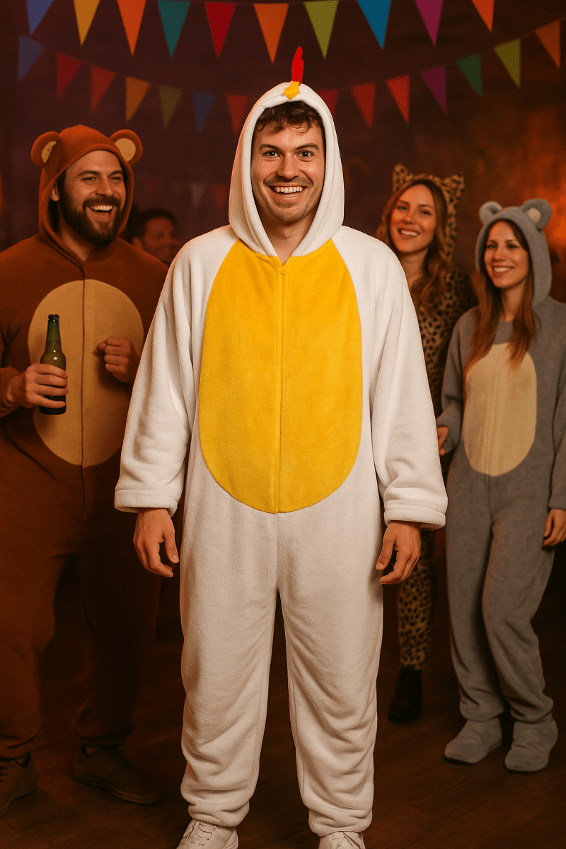 Przytul się w tej super miękkiej i zabawnej koszulce z kurczakiem! Biało-żółta koszulka jest idealna na karnawał, bal przebierańców, festiwale lub przytulny wieczór na kanapie. Dzięki jednemu rozmiarowi jest wygodny dla prawie każdego.