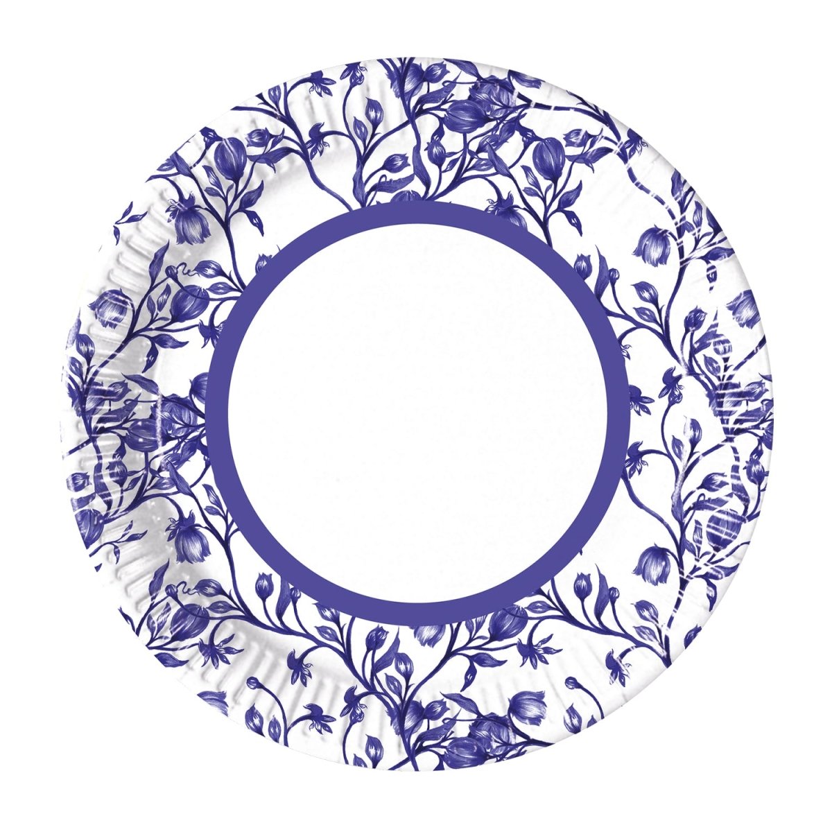 Zawartość opakowania: talerze z niebieskim porcelanowym nadrukiem