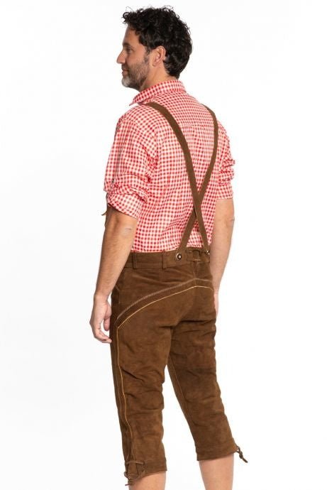 Lederhose skórzane długie ciemnobrązowe i szelki