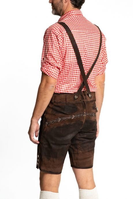 Skórzane krótkie buty w kolorze ciemnobrązowym z przeszyciami i szelkami