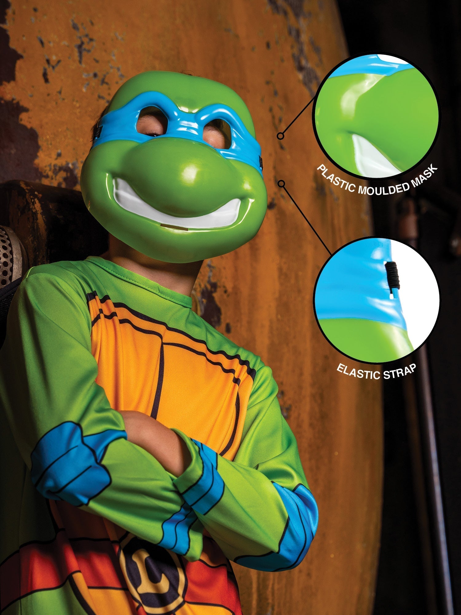 Uzupełnij kostium Leonardo swojego dziecka o tę kreatywnie zaprojektowaną półmaskę! To akcesorium, stworzone specjalnie z myślą o wzbogaceniu stroju żółwia Ninja, doda autentyczności i uroku jego bohaterskiemu wyglądowi. Gotowy, by poprowadzić drużynę żółwi w wielkim stylu!