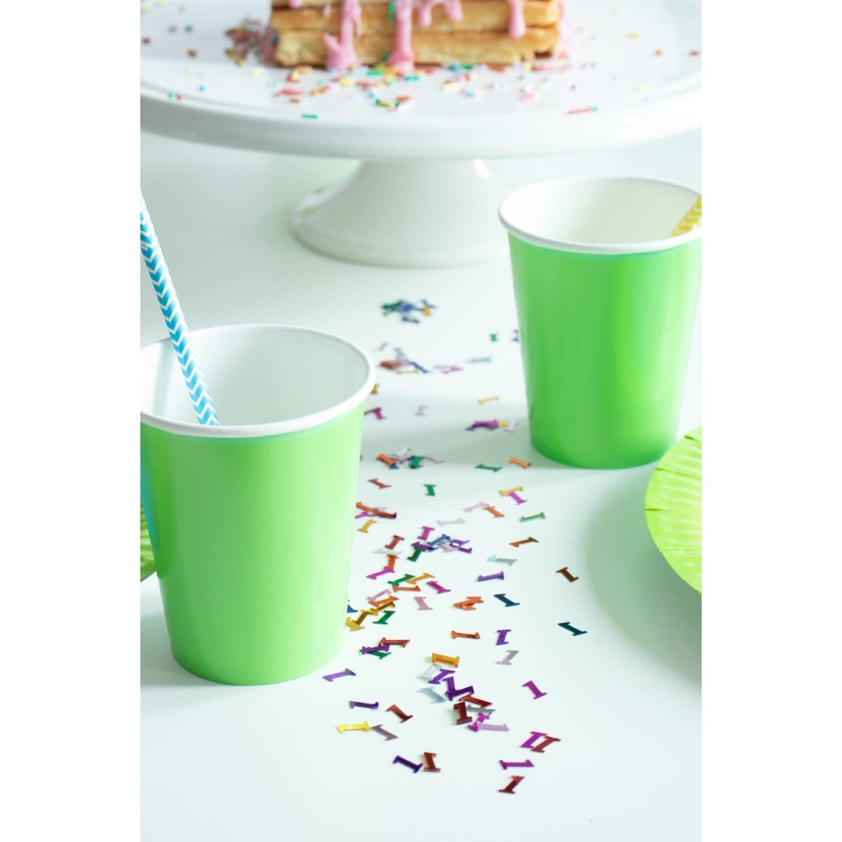 Kubki zielone 350ml - 8 szt. Zawartość: 8 kubków. Kolor: zielony. Do wykorzystania na przykład podczas następujących przyjęć/imprez okolicznościowych: Urodziny, Impreza dla dzieci, Impreza tematyczna. Jeden kubek ma pojemność 350 ml. Artykuł jest wykonany z papieru.