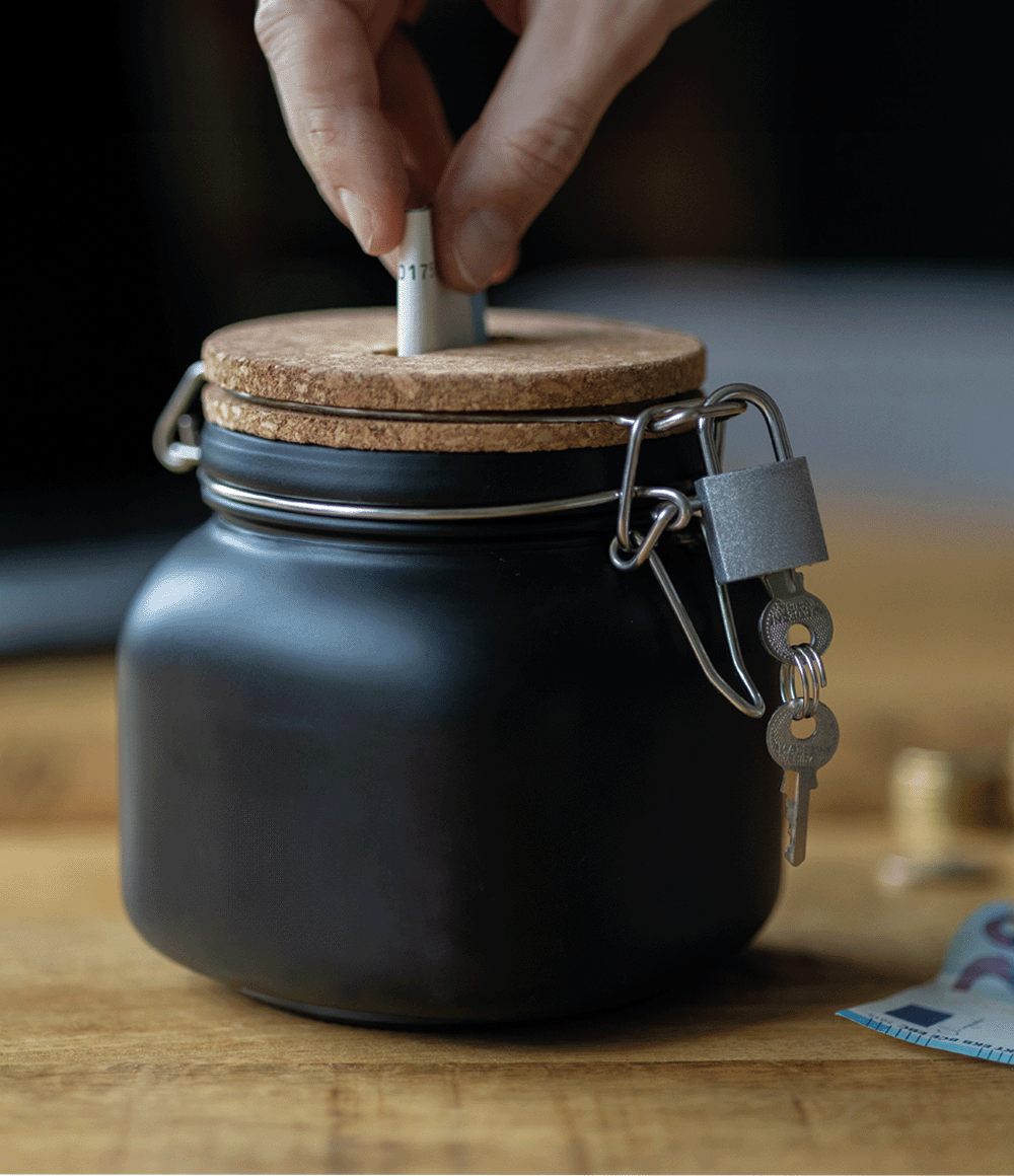 Ta skarbonka łączy funkcjonalność z luksusowym wyglądem i bez wysiłku pasuje do każdego pomieszczenia lub biurka.