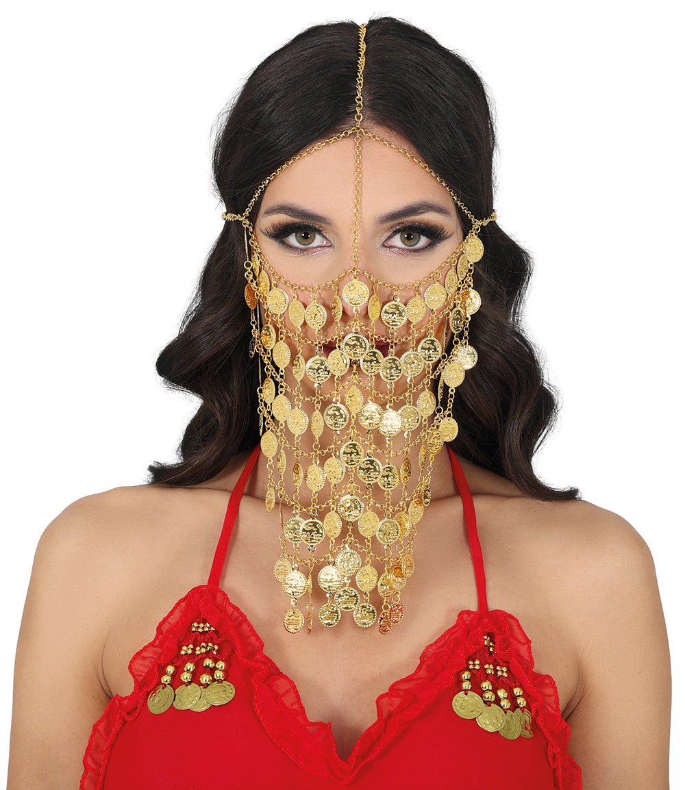 Zrób tajemnicze i efektowne wrażenie dzięki tej złotej metalowej masce z monetami. Zabawne monety delikatnie się poruszają i tworzą elegancki efekt dźwiękowy, dzięki czemu maska jest idealna na imprezy tematyczne, wieczory taneczne lub fantazyjne imprezy z odrobiną luksusu